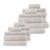 Each set comes with 2 x bath sheets, 6 x bath towel, 4 x hand towels, 4 x wash towels and 2 x bath mats.